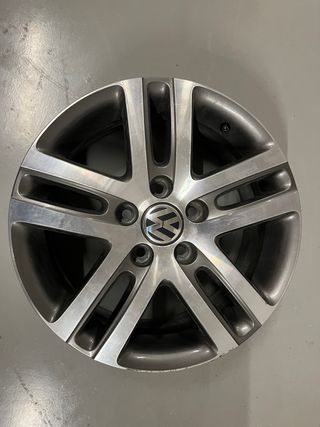 Llanta de aleación para Volkswagen Golf VI. La llanta es usada pero está prácticamente nueva, no tiene desgaste de uso. - Modelo: 1K0601025BM - Diseño de 5 radios - Acabado plateado y gris oscuro