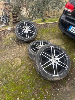 llantas pack m doble medida en 18 pulgadas tienes tipicos roces de aparcar no pierde aire ningun ni estan dobladas los neumaticos estan en buen estado 5x120
