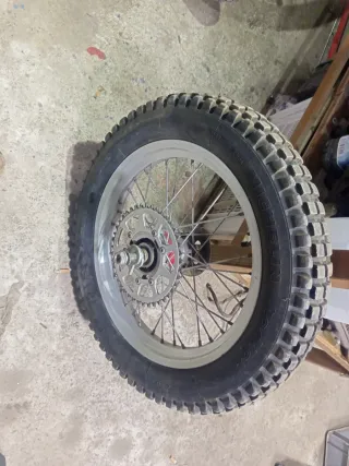 Rueda trasera para moto de trial Gas Gas. Llanta de aluminio con radios. - Neumático de trial. - Llanta de aluminio. - Radios.