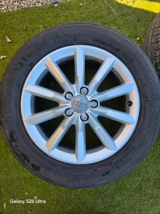 Se vende 4 llantas de aleación Audi R17. Original con dos 2 neumáticos delanteros al 80% de vida los otros dos 2 para cambiar Vale para mas modelo 5x112 AUDI Y VOLKSWAGEN SEAT Las llantas están platicamente Nuevas Precio 250€ Mas información por tlf o WhatsApp 651 96 21 63 - Diseño multirradio. - Acabado plateado. - Incluye neumáticos. - encleje 5x112 audi original