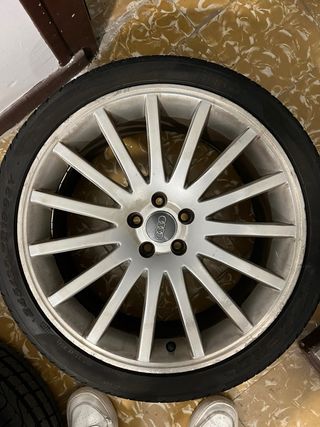 Se venden cuatro llantas de aleación plateadas con diseño multirradio.Se venden con neumáticos,dos están para terminar de andarlos y los otros están prácticamente nuevos,una de las llantas esta para reparar,tiene una pequeña fisura.No hago envíos,más información fotos o videos podéis preguntar. - Diseño deportivo. - Logo de Audi en el centro. - Neumáticos Pirelli P Zero.