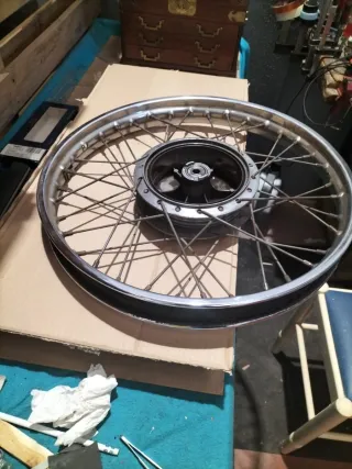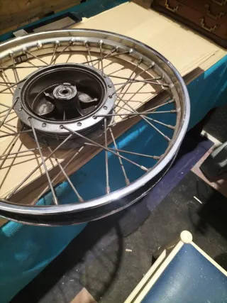 Llanta delantera para Yamaha Especial 250. Pieza de repuesto.sirve para 125 , le falta un radio por lo demas esta bastante aceptable - Llanta de radios. - Aro de metal plateado.