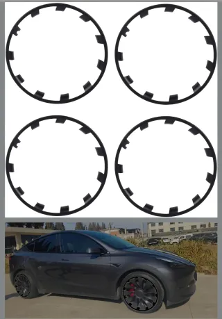 Set de 4 protectores de llantas para Tesla. Diseñados para añadir un toque distintivo a tus ruedas.Estos accesorios están fabricados generalmente en plástico ABS resistente y tienen como principal función proteger los bordes de las llantas de aleación contra arañazos, golpes y rozaduras causados por bordillos. Se instalan fácilmente encajándolos o mediante un sistema de empalme, y también añaden un toque estético al cubrir la llanta completa. - Color negro. - Diseño atractivo y aerodinámico