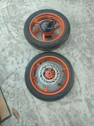 Las vendo económicas pues la pintura de la trasera esta para repasar. Los discos estan ok. Creo que son compatibles con rieju rs2 125 y aprilia rs125. Cada una en 50€, las dos en 90. No negocio.