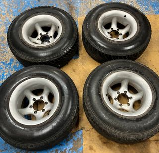 Vendo juego de llantas aluminio para 4x4, valido para Nissan Patrol, Terrano... Mitsubishi Montero/pajero... 6 tornillos Son 15 pulgadas, 10J de ancho y ET-44. Quedan muy gordas. Los neumaticos son del 2013, hay 2 a media vida y los otros 2 para cambiar.