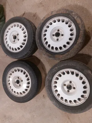 Juego de 4 llantas de aleación para Opel Kadett GSI. No tengo las tapas y los neumaticos estan para cambiar Se pueden enviar pero no se puede por wallapop