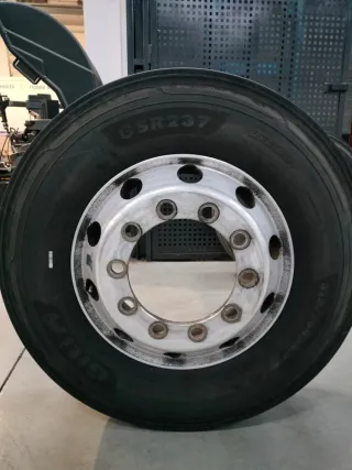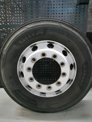 Juego de llantas Alcoa. - Llantas de aluminio. - Diseño de 10 agujeros. - Con neumáticos al 70% - Medida 315/70 22,5" - Incluye tuercas y tapones