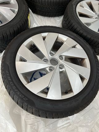 Juego de 4 llantas de aleación originales de VW con neumáticos de invierno prácticamente nuevos. - Llantas de 5 radios dobles. - Neumáticos Pirelli Sottozero 205/50 R17. Entrega en mano en Santander y alrededores Polo, touran , caddy , id