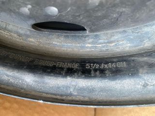 Juego de 4 llantas originales PSA de 14 pulgadas. - marca Dunlop 5 1/2 J x 14CH - Llantas originales de Peugeot 306 ( con tornillos) - Diseño de acero negro ,4 agujeros - En perfecto estado ( solo sucias)