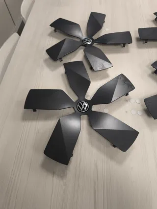 Se venden estás tapas para las poner en las llantas del tiguan. Están nuevas, según se ha recogido el coche del concesionario se han quitando. Adjunto foto de como es la llanta y como queda.