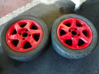 Se venden 2 llantas Nissan primera con 2 neumáticos semi slicks nadkan prácticamente nuevos 15' 4x114 Nissan ,Suzuki ... Neumáticos 195/50R15