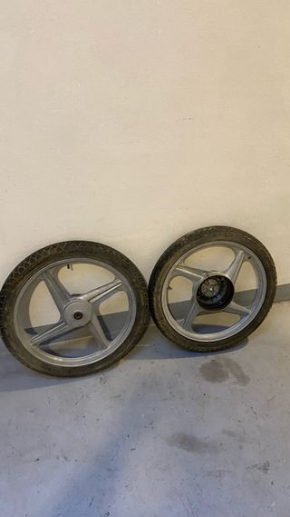Se venden ruedas completas para Honda de motocros, válidas para modelos a partir del 99. Sin golpes ni rayones, estaban montadas en una CRE dos tiempos del 2007. Llanta de 21"y 19" con discos y neumáticos como nuevos. Negociable. Contactar por WhatsApp o teléfono, no respondo a los mensajes por wallapop, gracias Tel. 644 82 29 33