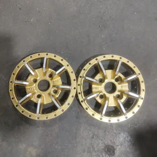 Pareja de llantas Douglas Weel traseras para Yamaha Raptor. 10x8 pulgadas. Ataque 4x115 mm. Fabricadas en aluminio pulido. Solo una puesta. Como nuevas