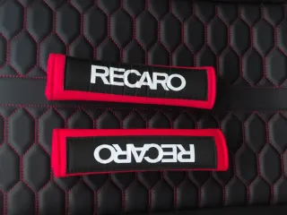 Vendo almohadillas para cinturón RECARO en color negro con detalles rojos, diseño deportivo tipo racing. recaro almohadilla cinturon funda cinturon coche deportivo racing tuning interior coche asiento deportivo accesorios coche motorsport trackday drift jdm vag bmw audi mercedes seat volkswagen honda acolchado negro rojo logo recaro