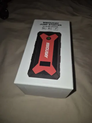 Arrancador de batería portátil para vehículos de 12V. Incluye pinzas de conexión y accesorios. - Diseño compacto y moderno. - Pantalla digital con indicadores. - Botones de control. - Pinzas de conexión rojas y negras. - Bolsa de transporte. -Arrancador,compresor de aire, banco de energía, linterna led