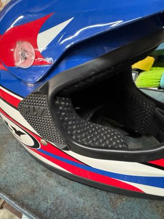 Casco de moto para jóvenes de entre 7 y 15 años. Diseñado para ofrecer protección y comodidad. - Interior acolchado. - Sistema de cierre con correa. - Material resistente. -50 veces de uso aprox