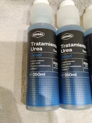 Lote de tres unidades de tratamiento para urea diésel de la marca Auxol. NUEVO A ESTRENAR SIN ABRIRLO - Limpia inyector y filtro SCR. - Previene la cristalización de AdBlue. - Cada botella contiene 250ml.