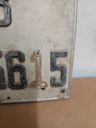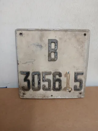 Matrícula antigua de moto con números en relieve en aluminio fslta el número 1 ideal para decoración - Letra B. - Números 305615. - Diseño con números en relieve.