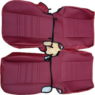 Fundas de asientos delanteras hechas a medida para Seat 124. Protegen tus asientos y le dan un nuevo aspecto a tu coche. - Color burdeos. - Material textil. - Incluye fundas para asientos delanteros y traseros, y reposacabezas.