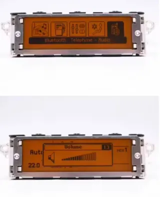 Pantalla de información para Peugeot 407 con conexión de 12 pines. Permite la selección de idioma. - Pantalla LCD con fondo naranja - Opciones de idioma: English, Français, 繁體中文, 简体中文. - Coche siempre en cochera. - Sin ningún arañazo
