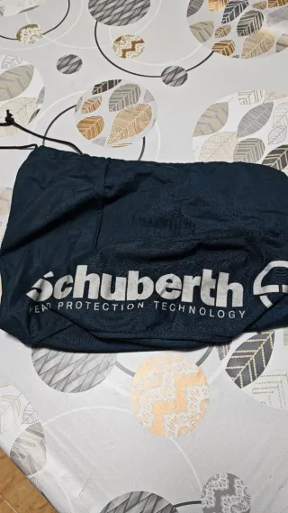 Funda de tela azul para casco de la marca Schuberth. - Diseño con logo de Schuberth. - Incluye texto HEAT PROTECTION TECHNOLOGY.