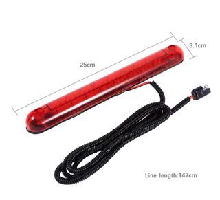 Lámpara de freno LED roja para coche, con cableado incluido. Red 24 led coche de montaje alto 3 RD freno, luz trasera reemplazo de lampara 12V super brillante. - Longitud de la lámpara: 25cm - Ancho de la lámpara: 3.1cm - Longitud del cable: 147cm