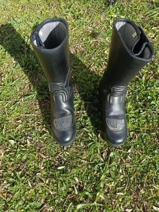 Botas de moto Axo Freeport Axotex, ideales para carretera y aventura. Color negro. Cuentan con membrana Axotex para mayor protección. Refuerzo plastico en el empeine un poco cuarteado. Cierre con velcro y cremallera. Suela de goma antideslizante. Protecciones en tobillo y espinilla. Son de mi mujer.Precio no negociable. Entrega en mano , no hago envios.