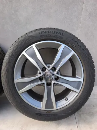 Juego de llantas Mercedes originales con neumáticos Uniroyal WinterExpert. - Neumáticos Uniroyal The Rain Tyre. - Tecnología Shark Skin. - Medida: 225/50 R17 99V XL. - Medida llanta 5x112 7JX17 ET 48.5 Válidas para clase C, clase E y otros modelos. Están prácticamente nuevas tanto llantas como neumáticos, menos una llanta que tiene un roce.