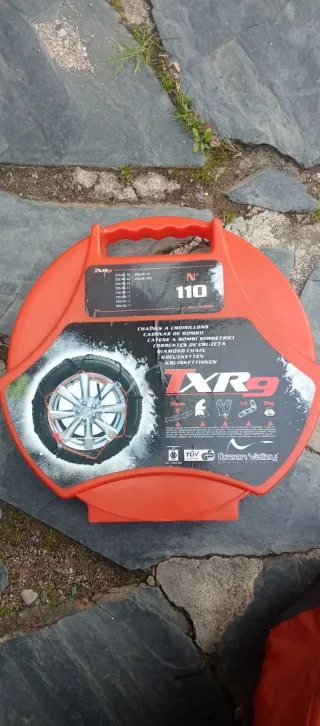Cadenas para la nieve modelo TXR9, tamaño 110. Medida habitual furgonetas. Nunca usadas. - Cadenas de rombos. - Homologadas TUV y GS. - Peso aproximado: 3kg. - Grosor de la cadena: 9mm.