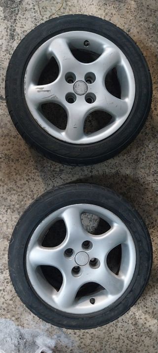 2 ruedas de aleación MIM. Neumáticos 195 50 15 tienen dibujo para pasar ITV o para acabar de gastarlos Roces de aparcar típicos - Tamaño: 15x7 pulgadas. - Patrón de pernos: 4x100. - Desplazamiento (ET): 40.