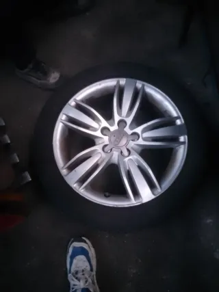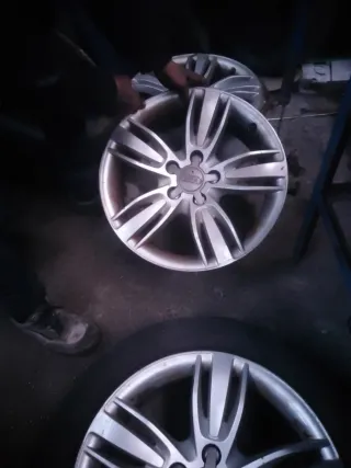 Juego de llantas de aleación para Audi. - Diseño deportivo de 5 radios. - Acabado plateado. - Logo de Audi en el centro.