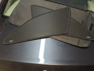 Juego de cortinillas parasol para Audi. Protegen del sol y dan privacidad. - Diseño a medida para ventanas traseras. - Logo de Audi integrado, desconozco el modelo