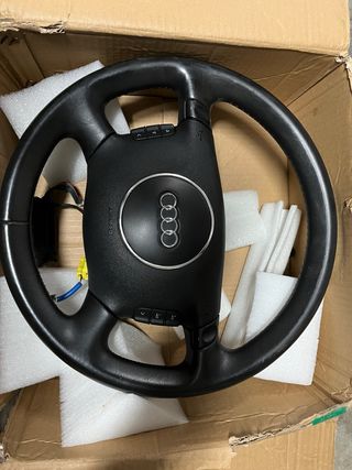 Volante deportivo para Audi A3 modelo 8P. Con logo de Audi en el centro y botones multifunción. el original de un a3 3.2 con cambio DSG y cambio en el volante, va con airbag y su módulo, su estado es perfecto