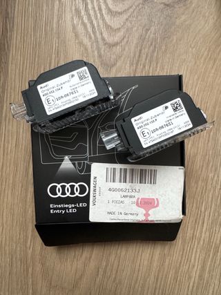Luz de cortesía con el logo Quattro, diseñada para proyectarse al abrir las puertas del coche. - Logo Quattro proyectado. - Diseño elegante.