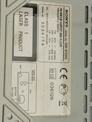 ID-140966 Se vende SISTEMA AUDIO / RADIO CD DACIA LOGAN 1 K7MF7 E13036126 2008 - Años desde 2005 hasta 2009, MARCA SONY MODEL CDX GT225C Referencia: E13036126. Auto Desguaces Quiroga S.l con numero de gestor SC-RP-P-XV-09355 TEL:645050656 Visita nuestro perfil para encontrar más recambios, realizamos ventas y envios a través de Wallapop por correos y seur de piezas voluminosas (contactar antes del pedido). NO HACEMOS ENVIOS POR INPOST.