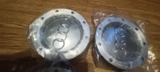 Juego de dos tapas para bujes de llanta de Audi. Diseño elegante con el logo de la marca. - Incluye 2 tapas. - Logo Audi plateado.