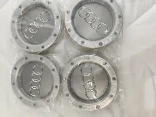 Set de 4 tapacubos para llantas de Audi. Diseño plateado con el logo de los cuatro aros. - Logo de Audi integrado. - Acabado metálico. - 146 mm