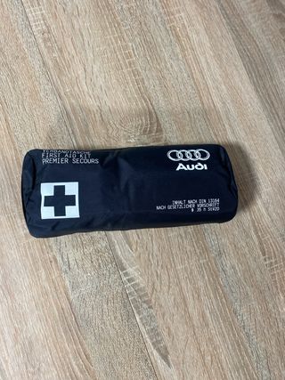 Kit de primeros auxilios de la marca Audi. - Bolsa negra con el logo de Audi. - Incluye varios elementos para emergencias. - red de seguridad - chaleco reflectante