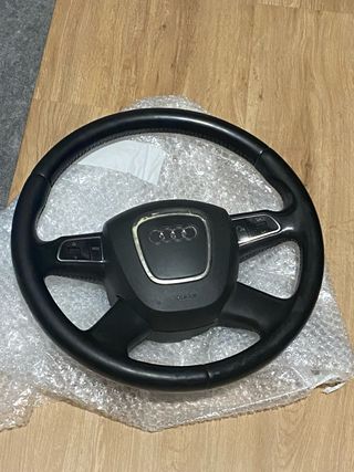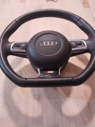 Volante deportivo de cuero para Audi. -Con airbag - Compatible con Audi A3 8P, TT, TTS y otros modelos. - Diseño deportivo , acabado en cuero y achatado - Logo de Audi en el centro. - Mandos multifunción -Logo sline