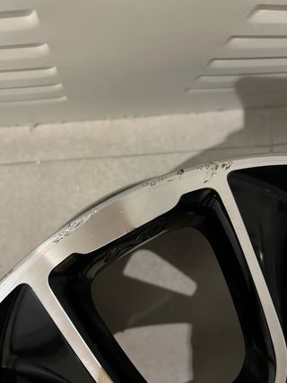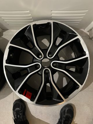 Juego de llantas de 19 pulgadas para Hyundai i30N Performance. Tiene los arañazos tipicos del dia a dia, de ahi su precio. Una vez con el neumáticos montado prácticamente no se aprecian la gran mayoría Diseño deportivo en negro y plata. - Diámetro: 19 pulgadas. - Acabado bicolor: negro brillante y detalles en plata pulida. - Diseño multirradio. - Incluye detalle rojo con logo 'N'. - Incluye Tapas N’ Sin valvula