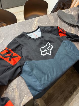 Equipación Fox 180. TALLA M - Camiseta de manga larga. - Diseño en negro, gris y detalles en naranja. - Logo de Fox en el pecho.