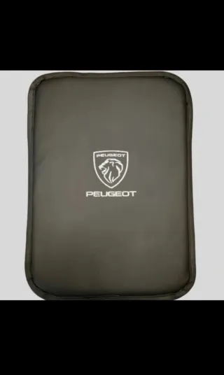 Reposabrazos nuevo para coche Peugeot. Diseñado para ofrecer comodidad. - Logo de Peugeot visible.