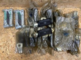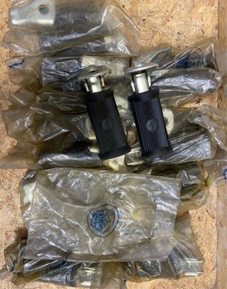 Conjunto de 12 estriberas para motocicleta clásica de la marca RIPA. Piezas de repuesto para tu moto. - Estriberas con goma negra. - Logo RIPA visible en las estriberas. - Fabricadas en metal. -9 juego RIPA -2 juegos vicma
