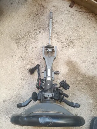 Volante completo para BMW E39. Incluye todos los componentes visibles. - Logo BMW central. - Botones multifunción integrados. - Funda de cuero negro con costuras.
