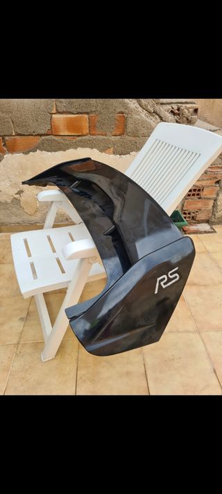 Alerón deportivo para Ford Focus RS. Diseño aerodinámico y acabado negro metalizado. - Logo RS plateado.