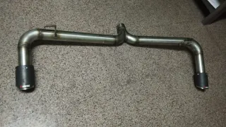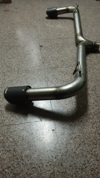Sistema de escape trasero hecho a mano para Mazda RX-8.Colas estilo Akrapovic efecto carbono.. Fabricado en acero inoxidable con puntas de carbono. - Diseño artesanal. - Puntas de fibra de carbono con logo. - Material: Acero inoxidable.