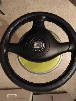 Volante original para Seat León. Pieza de repuesto en buen estado. - Diseño deportivo y ergonómico. - Acabado en cuero negro. - Logo de Seat en el centro.esta impecable sin marcas ni arañazo el cero muy bien conservado