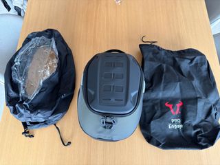 Bolsa sobredepósito SW MOTECH Engage con anillo PRO BMW - Bolsa SOBREDEPOSITO de gran calidad - Incluye bolsa de tela negra con logo para guardado. - Incluye funda impermeable transparente. - Capacidad de 6-10 L expansible En perfecto estado. Poco uso Anillo pro para anclaje, usado en una BMW (según etiqueta en caja serviría para Ducati, KTM, y Triumph).