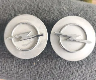 Dos tapones de buje con el logo de Opel. - Diseño circular plateado. - Símbolo de rayo característico de Opel.