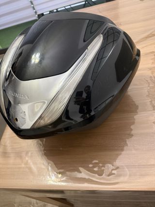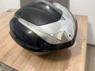 Baúl superior para moto de la marca Honda. Diseño elegante en color negro con detalles cromados. - Acabado brillante. - Logo de Honda visible. Le falta el cierre, de ahi el precio Cofre para honda sh 300-125-150